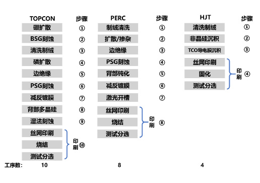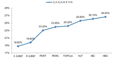 在目前主流的晶硅电池中,PERC技术相对较成熟、性价比较高,设备已完成了国产化,因技术改进简单,成为这两年高效电池主要扩产的技术,自2014年进入快速成长期,截至目前仍占主流市场。